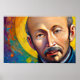 This striking portrait of Saint Ignatius of Loyola captures his thoughtful gaze and strong faith. Surrounded by vibrant color, it reflects his deep love for Christ and dedication to guiding others in prayer. Perfect for prayer rooms, classrooms, or home study spaces.