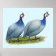 Las guineas de pizarra no muestran puntos de polka en absoluto sobre sus plumas, siendo un gris azulado suave, oscureciendo hacia el cuello y la cabeza.