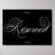 Esta hermosa y atemporal señalización horizontal de mesa reservada le da una elegancia sencilla a cualquier tipo de recepción nupcial, ducha o motivo fiesta. El lujoso diseño de guiones cuenta con una original y romántica caligrafía blanca moderna. El bonito tipo de letra con un color de fondo de personalizable facilita la adaptación a cualquier tema. Para otros colores o productos a juego, por favor visite la tienda JustFharryn Zazzle, o contacte con el diseñador, c/o Fharryn@yahoo.com Todos los derechos reservados. #zazzlemade