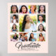 Estar orgulloso, alegrarse y mostrar este hito de tu grado favorito. Crea este elegante, simple, moderno, personalizado poster de collage de notas K - 12 para un gran placer. La caligrafía de escritura manuscrita negrita, gráfica, gris suave, icono de tapón de grad y tipografía sans serif superponen un fondo rosa de color rosa claro. Personalizar el texto con el nombre de tu graduado, el nombre de la escuela, el año de clase y agrega tus 13 fotos. En esta moderna y elegante colección también encontrarás almohadas de juego, bolsitas de té, mantas, tableros de espuma y otros objetos de graduación. ¡Garantizado para preservar los preciados recuerdos de su ocasión especial! Simplemente teclee el nombre de tu graduado, el año escolar y de clase, agrega sus 13 fotos, y puedes personalizar fácilmente este poster de collage de fotos de la graduación K - 12. Por favor, envíame cualquier pregunta o petición.