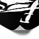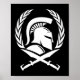 Silhouette de casco espartano y hombros con dos espadas cruzadas y corona de flores alrededor del casco.