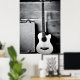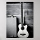 Una guitarra abandonada por la pared de madera de la habitación espera a su músico