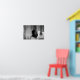 Las paredes de arte estilizado para los amantes de la música están decoradas con una fotografía en blanco y negro de dos guitarras acústicas sobre fondo de madera.