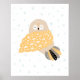 Decora la habitación de tu pequeño con este adorable cartel moderno escandinavo de un búho volando sobre un fondo azul claro estrellado. Julie McIver