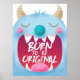 Decoración linda para el cuarto del bebé. Es una ilustración adorable de un monstruo azul con la boca bien abierta. El texto dentro de la boca dice "nacido para ser original". Diseño genial de cita inspiradora para el cuarto de los niños.