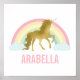 La impresión adorable del vivero presenta una dulce ilustración vectorial de un unicornio dorado y un arcoiris.