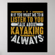 Impresionantes camisetas de diseño de kayak, posters, bolsas, planificadores y más perfectas para todo aquel que ame el kayak, incluye texto de oro y blanco que dice Si quieres que te escuche habla de kayak... ¡Siempre!