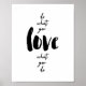Haz lo que amas.... Me encanta lo que haces - ¡grandes palabras para vivir! El aspecto con letras de mano con una mezcla divertida de tipografía le da un toque contemporáneo. Esquema clásico de color negro sobre blanco.