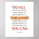 Un recordatorio gentil pero fuerte de "Haz todo el bien que puedas, por todos los medios que puedas; En todas las maneras que puedas, en todos los lugares que puedas, en todo el tiempo que puedas, a toda la gente que puedas, tanto como puedas". ¿Quieres cambiar tu mundo? ¡Esto lo hará!
