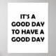 Añade un poco de optimismo a tu armario con el diseño "Es un buen día para tener un buen día". Con un texto limpio y audaz sobre un fondo oscuro, es una gran pieza motivacional.