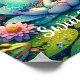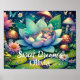 Hada personalizada publicada para el dormitorio de un niño o la guardería de un bebé. Lindo hada durmiendo en una flor de loto en una hoja de lirio con flores y fondo de hongos. Ilustración de estilo de cuento de hadas lindo.