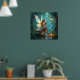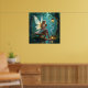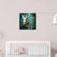 Un bonito poster con un hada colocada en un cuarto de baño en un bosque encantado, iluminado por lámparas que beben una taza de café caliente.