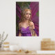 Representación digital 3D de un hermoso hada rosada en el fondo del árbol verde