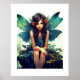 Un hada de bosque sentado en un tronco de árbol bajo la lluvia. Fantasía poster de hadas de bosque.