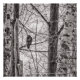 Fotografía en blanco y negro de un halcón encaramado en una rama de un grupo de árboles. Derechos reservados ©2024 Kimberly J Tilley. zazzle.com/store/developingnature