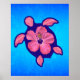 La tortuga hawaiana honu es un símbolo de paz, buena suerte y espíritu en el interior. Se basa en la leyenda hawaiana de Kauila, una tortuga marina que podría convertirse en chica y vigilar a los niños de Hawaii. Este es un diseño honu rosa y azul con una flor de hibiscus con fondo azul marino