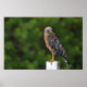 Perches De Halcón Rojo Con Hombro En El Puesto De Gage Del Personal Frente A Un Fondo Verde Viviente. Todas las imágenes Copyright 2012-2018 High Sights Aerial Imaging, LLC. Todos Los Derechos Reservados.