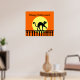 La imagen es de mi dibujo original. Este espeluznante gato negro con ojos verdes está cruzando la parte superior de una cerca negra. Hay una enorme luna amarilla en el fondo contra un cielo naranja. Vea mi tienda Arte de MAR para encontrar productos que coincidan con este diseño.