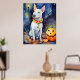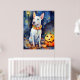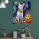 Póster Halloween Bull Terrier con calabazas aterradoras