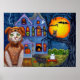 Póster Halloween Cat Dog Costume Haunted Victorian House