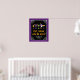 This fun and spooky party sign features Halloween themed cocktails with decorations such as a witch's hat, broomstick and cauldron, ghost, bat, pumpkins and eyeballs. In the background is a black and purple damask pattern with spider webs. The text combines decorative and serif fonts for a stylish and modern look. This is perfect for a Halloween fancy dress costume party.