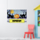 Un Poster vintage de Halloween que retrata a dos gatos negros con una calabaza. Personaliza con tu nombre de elección.