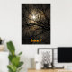 Este poster de Halloween presenta un místico cielo nocturno. El aire está impregnado de niebla. La luna llena que brilla a través de los árboles ilumina las nubes brumosas en tonos dorados, naranjas amarillos, blancos y marrones y forma un interesante patrón abstracto. El texto dice: Cuidado. Se puede personalizar según tus necesidades.