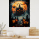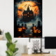 Póster Halloween de mansión enloquecida con calabazas Jac
