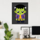 Un poster con una divertida imagen de Halloween mostrando un monstruo Frankenstein verde.
