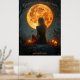 Entrar en una serena pero inquietante noche de Halloween con este poster místico que presenta a una mujer sentada bajo una brillante luna llena, rodeada de velas parpadeantes y murciélagos volando sobre sus cabezas. El ambiente oscuro y la luz de la luna, que le confieren un encanto especial, crean una mezcla perfecta de misterio y magia, ideal para la decoración de Halloween o para los que se sienten cautivados por lo sobrenatural. Personalizar el texto para hacer esta obra de arte única tuya para fiestas de Halloween o espeluznante decoración de temporada.