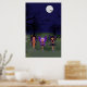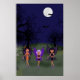 Raven, Phoenix y Eve caminan bajo la luna llena en la noche de Halloween cerca del cementerio mientras los murciélagos vuelan sobre sus cabezas.