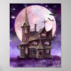 Halloween Haunted House With Moon and Bat Poster Wall Art