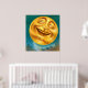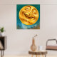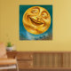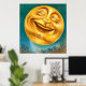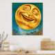 Un divertido poster de Halloween con una brillante luna sonriente.