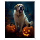 Póster Halloween Saint Bernard con calabazas aterradoras