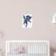 Ilustración vintage de diseño de vacaciones de Halloween con un monstruo gárgola espantoso. Esta criatura azul parece un diablo o demonio con alas, orejas largas y puntiagudas y pies palmeados.