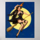 Great vintage Pinup girl illustration. Cool retro pin up painting of a witch flying on the broomstick. Halloween pinup witch design on many high quality products and gift ideas.