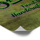 Cartel de la empresa Salem Broom en blanco de resplandor negro, verde y violeta, con un fondo gótico con estampado verde.