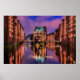 Hamburgo Alemania de noche, pintorescas luces de la ciudad, edificios y puentes.