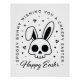 Creepy happy Easter wishes with a spooky bunny rabbit skull illustration. Gothic party theme black and white aesthetic funny quotes greetings decor poster print.