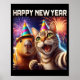 Póster Happy New Year 2026 Cute Cat Capybara Party Art
