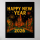 Póster Happy New Year 2026 Fantasy Castle Fireworks Night