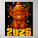 Póster Happy New Year 2026 Highland Cow & Party Hat N