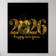 Póster Happy New Year Cute Gold Disco Ball Bow New Year's