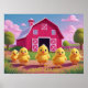 Póster Happy Spring Chicks in Barnyard