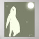 Este es un poster mágico, retrata a un animal de yin, la liebre, que es el guardián de los animales salvajes. La liebre simboliza la paz, la prosperidad y la locura. Esta liebre en particular es serena, hipnotizada por los rayos de la luna y las estrellas ...