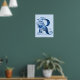 Echa un vistazo a esta gráfica de Ravenclaw basada en el hechizo acuático Aguamenti. Aquí hay un cuervo azul parado frente a una letra gigante "R" con el nombre "Ravenclaw" escrito debajo.