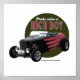 Imagen digitalmente reelaborada de una barra alta de Black and Red Deuce sentada frente a un Relieve metalizado circular verde oscuro con palabras encima del auto.