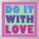 No lo hagas solo, hazlo con amor. En colores vivos de rosa, verde, morado y azul.