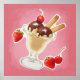 Copas de helado de vainilla con hielo de chocolate y fondo rosado caliente.