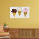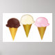 Póster Helados de chocolate, vainilla y fresa